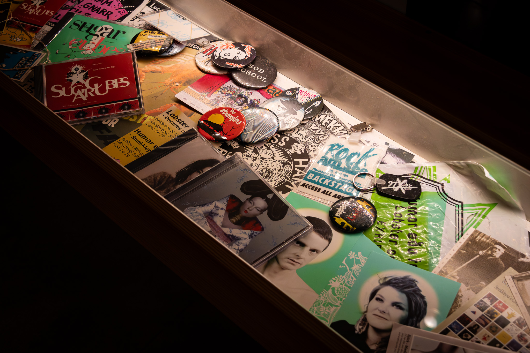 Á safninu eru margir merkilegir gripir úr íslenskri tónlistarsögu. Þar má sjá trommusett Gunnars Jökuls Hákonarsonar sem notað var á plötunni Lifun með Trúbrot. Einnig er til sýnis kjóll sem Emilíana Torrini klæddist í myndbandinu Jungle Drum. Á safninu er einnig tréskúlptúr af Hjálmum og búningar úr kvikmyndinni Með allt á hreinu. Þar má líka finna fatnað og muni frá Ellý Vilhjálms, Rúnari Júlíussyni, Herberti Guðmundssyni og fleiri þekktum tónlistarmönnum.